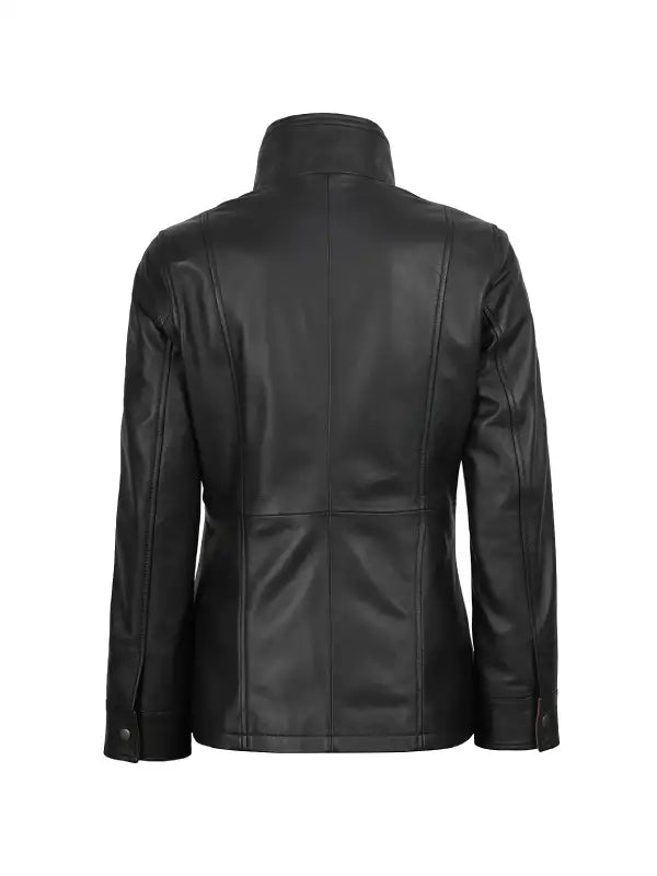 The premium black leather exterior offers a smooth, matte finish that elevates everyday outfits while remaining versatile enough for evening wear. Inside, a comfortable lining ensures easy layering across seasons. Thoughtful seam placement enhances the tailored fit, creating a flattering profile without sacrificing movement. Whether styled with denim and boots or layered over knits, this jacket delivers timeless appeal, celebrity-inspired confidence, and modern luxury in one refined piece.