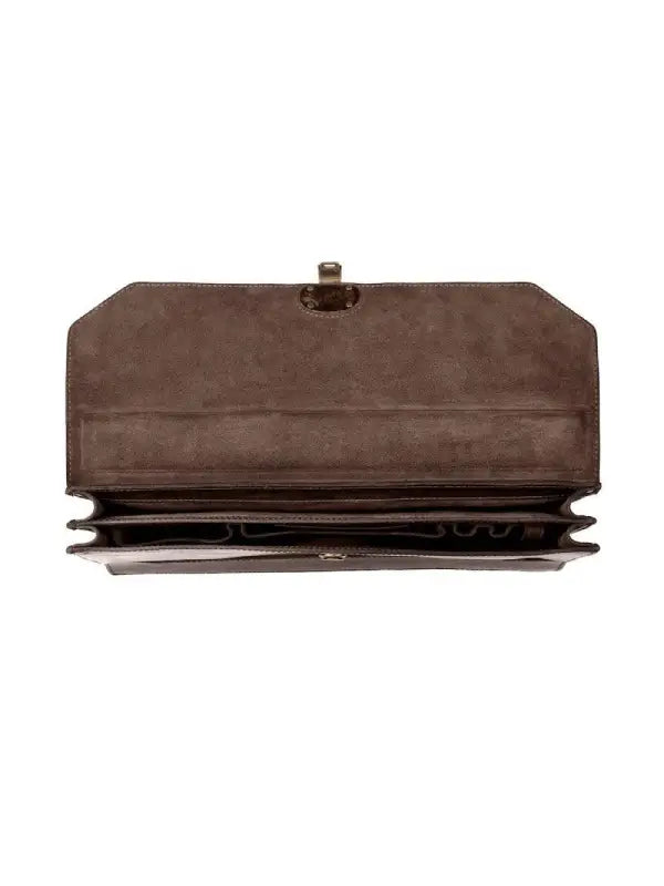 Inside, the briefcase opens to multiple accordion style compartments that let you organize documents, folders, a tablet, and work items with ease. The suede lining gives a soft and refined feel while protecting your belongings. The top handle is comfortable to carry and the detachable shoulder strap offers hands free use when needed.