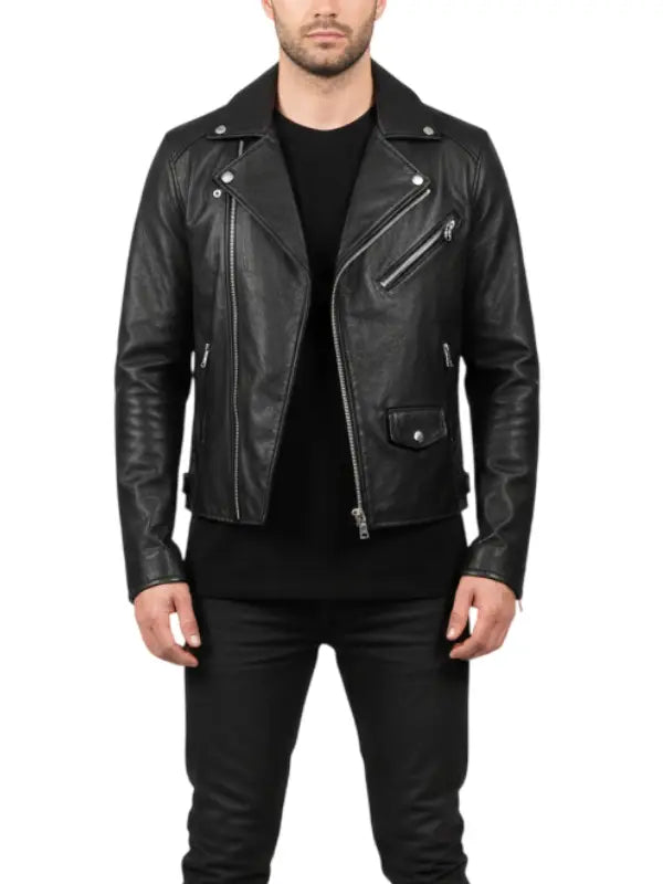 The real leather construction delivers durability, comfort, and a natural texture that improves with wear. A tailored fit enhances the silhouette, while zippered pockets and strong stitching add everyday functionality. Whether paired with jeans for casual wear or layered for night rides, this jacket brings attitude, confidence, and timeless edge to your wardrobe.