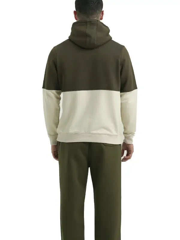 Refresh your casual wardrobe with this men’s olive and beige two-tone hoodie, designed for effortless everyday comfort with a clean, modern aesthetic. Featuring a color-block design, this hoodie blends earthy olive tones with a soft beige lower panel for a balanced, contemporary look.