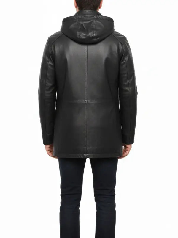 This men’s real leather black long jacket is built for style and function. It features a removable inner zip layer that adds warmth and versatility, making the jacket suitable for both winter and transitional seasons. Crafted from high quality genuine leather, it offers a sleek look with premium comfort.