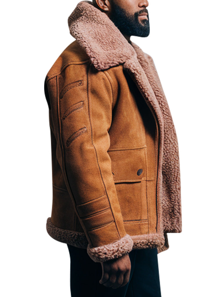 This men tan shearling aviator jacket is one that you will need especially during the cold winter season as it will help you make a statement while keeping you warm. It is comfortable and comes with a soft shearling lining and is made out of a shiny tanned leather material. The shearling collar is also extended to make the jacket look rugged and classy, and the lining is made with shearling material for warmer wear. This aviator jacket is suitable for cooler conditions, so weather-wise, you will look incredibly stylish while remaining warm. The fit of the shirt is tailored, the sewing and the panels have rigid outlines; it is usefully functional and trendy for any sport event or a leisurely stroll.