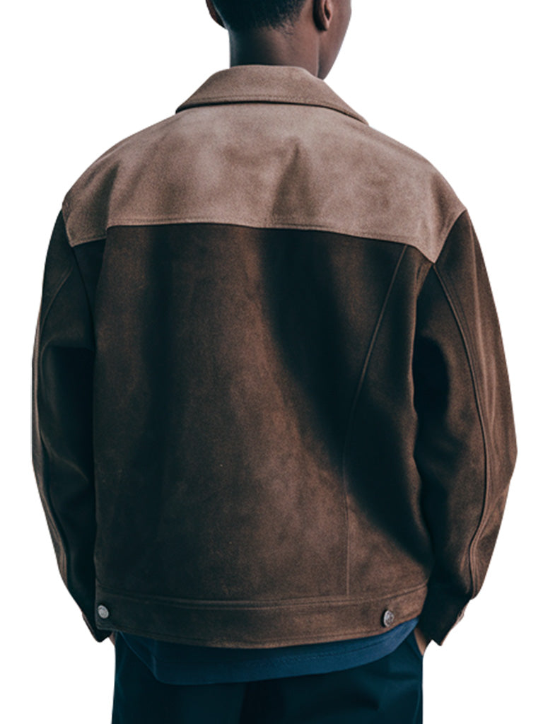 This men’s two-tone brown suede leather jacket is a perfect example of classic cuts mixed with modern production techniques. This jacket is of suede with mixtures of two toned shades of brown, thus, it is rather appealing. One of the colours is dark brown on the body area and the other colour, which is light beige on the sleeves and the upper yoke gives the jacket a very vintage feel. This jacket has buttoned chest pockets, side pockets, button front closure, which makes it both stylish and functional. The suit is form-fitting without being too tight or too loose, and it can be worn for business casual and business formal events so that you can stand out.