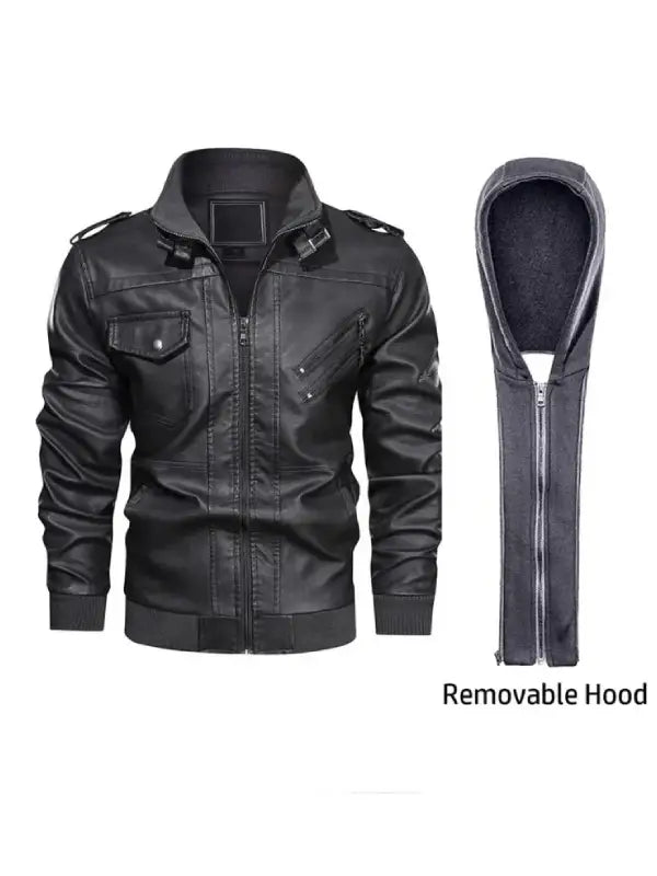 This black hooded leather jacket mens is the perfect jacket to wear when men want to express their fashionable masculinity; this is more than an outer wear, it is a statement of confidence. It can be worn as streetwear or semi-formal, and it can fit any event. This hooded leather bomber jacket will be the perfect addition to your wardrobe and will make every outfit unique.