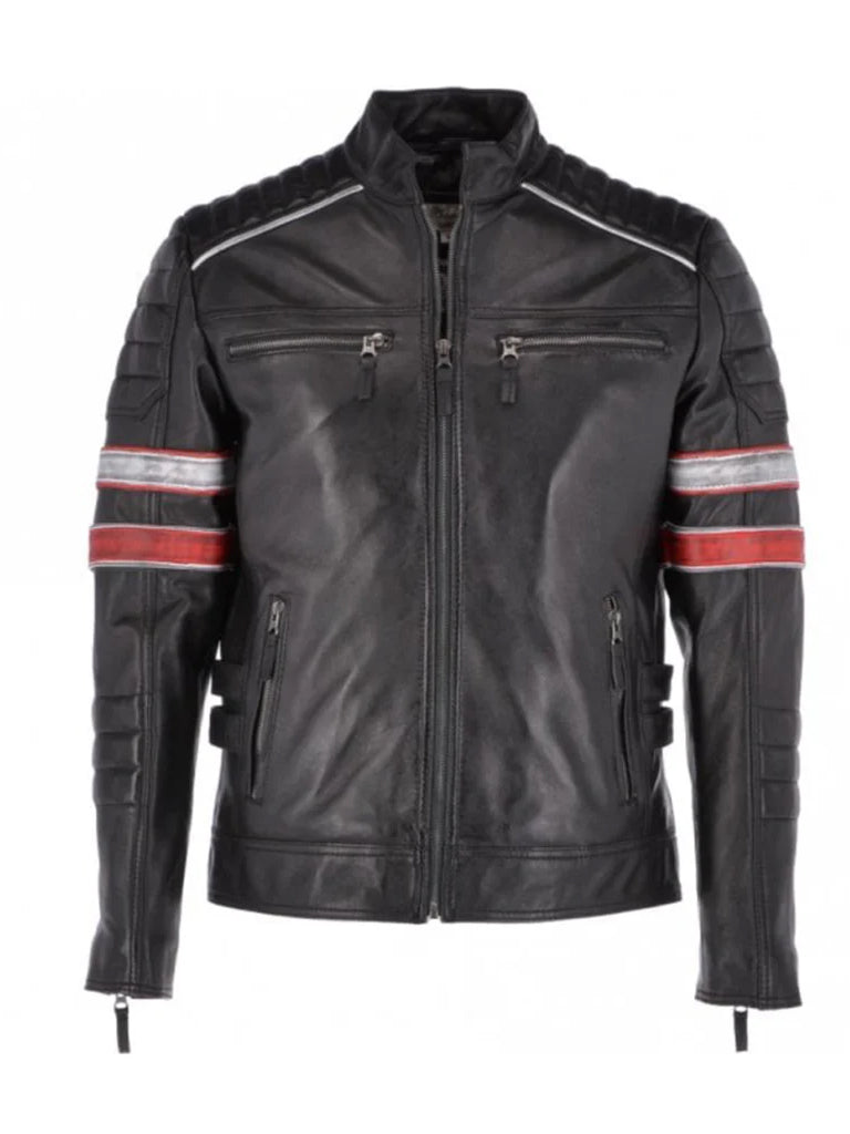Black Stripes Biker Real Leather Jacket