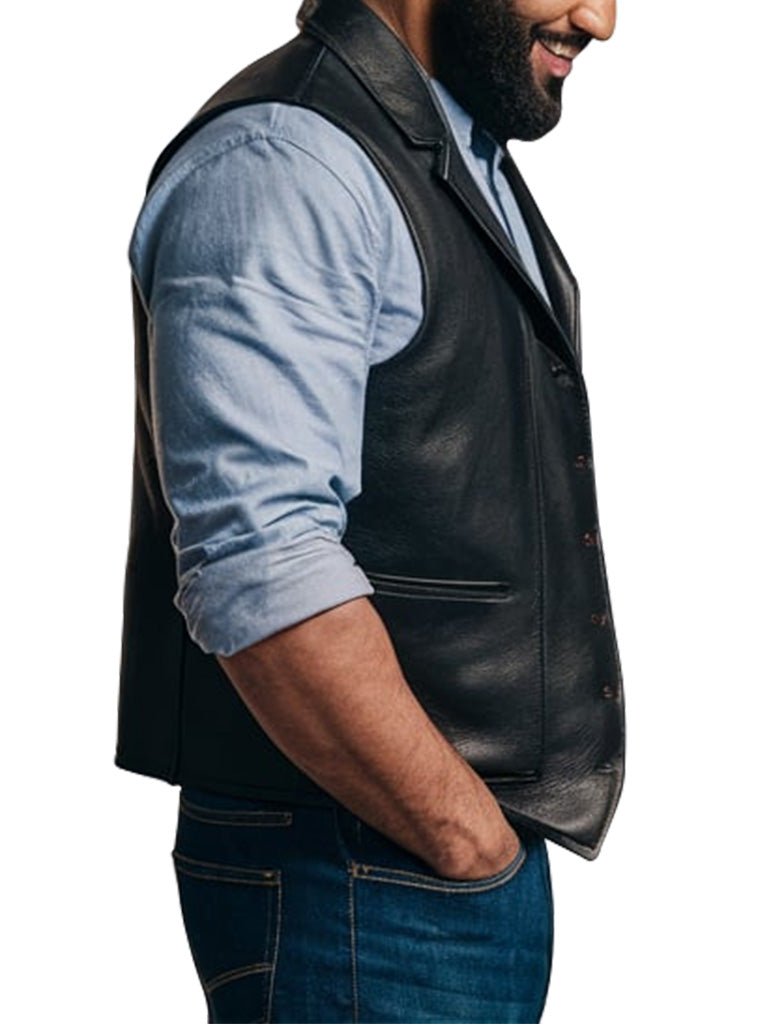 Whether you're dressing up for a formal occasion or adding an edge to your casual look, this black leather vest is designed to offer both style and comfort. The smooth finish and tailored fit make it an excellent choice for men who appreciate quality craftsmanship. Experience the timeless appeal of a leather vest that never goes out of style.