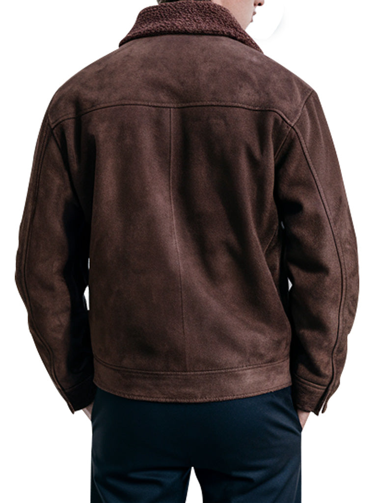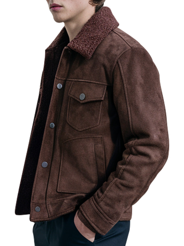 Welcome to elegance and sophistication with our Men’s Brown Suede Shearling Collar Jacket. This jacket is made of suede which makes the texture of the jacket smooth and also you will feel warm while embracing the fashion. Traditional shearling collar embroidered on its neck makes it look more conventional and protects the wearer from extreme cold of winters. It also has buttoned closure and includes several front pockets that not only make this kind of jacket look fashionable but useful too. Whether you are dressing up for the day or you will spend your night going from place to place dressed in layers, this jacket is a guaranteed stunner. Suitable for the modern man who loves tradition and well-made suits.