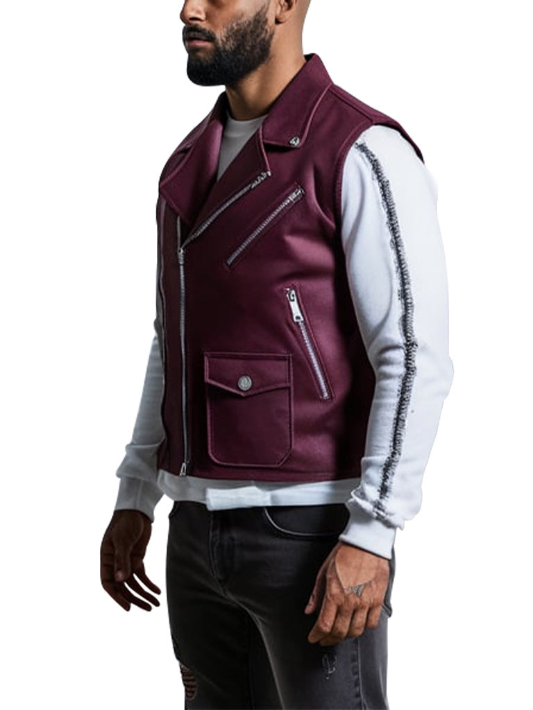Unleash your inner rebel with this Men's Burgundy Leather Biker Vest, a bold and stylish addition to any wardrobe. Made from high-quality leather, this vest features an eye-catching asymmetrical zipper design that brings a modern twist to a classic biker look. The deep burgundy color adds a unique flair, while multiple zippered pockets provide functionality and style. With a tailored fit, snap-button details, this vest ensures a comfortable and customizable fit. Perfect for motorcycle rides, casual outings, or making a statement at any event, this vest is a must-have for those who love to stand out.