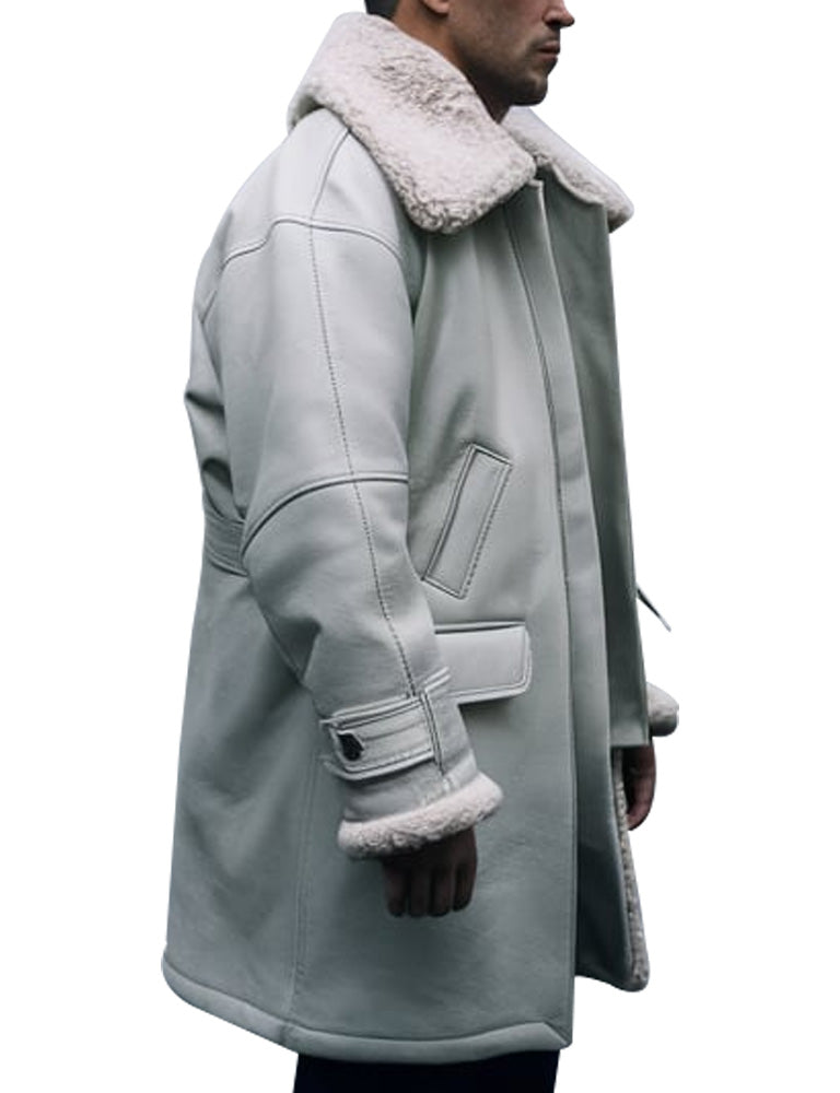 Do not let the cold weather ruin your fashion statement; get our Men’s Off-White Shearling Lined Aviator Jacket. This stylish and practical jacket is made for those who want to look good while wearing comfortable and warm clothing; the interior of the jacket is decorated with a genuine shearling. With its long lasting off white colour on the outside and the softness of the shearling on the inside, it can be worn to enhance the look of any outfit. It also has the necessary elements like the cuffs that can be adjusted, multiple pockets, and the front zipper that makes the jacket suitable for casual and outdoor wear. Upgrade your style with this timeless piece that will ensure you are warm all through in style.