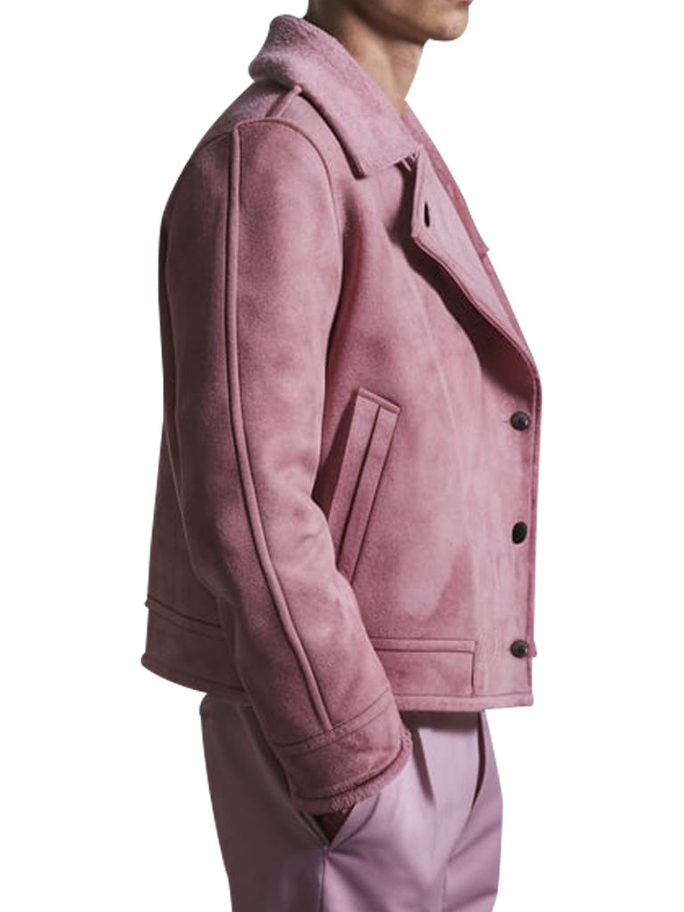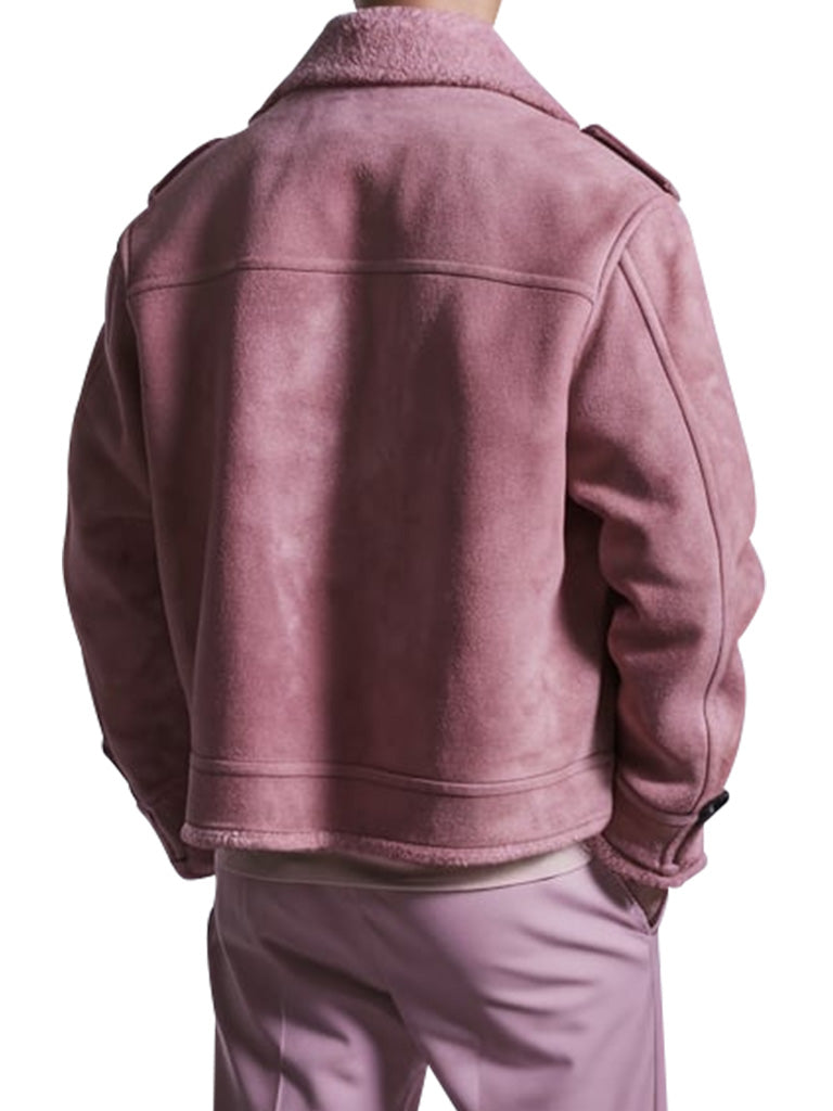 Elevate your winter wardrobe with this men's pink shearling suede jacket, designed to offer both style and warmth. The soft suede exterior is complemented by a cozy shearling lining, ensuring maximum comfort during colder months. The double-breasted design adds a sophisticated touch, while the rich pink hue offers a modern twist on a classic style. With a tailored fit and button-up closure, this jacket is perfect for layering over casual or formal outfits, making it a versatile addition to your winter collection.