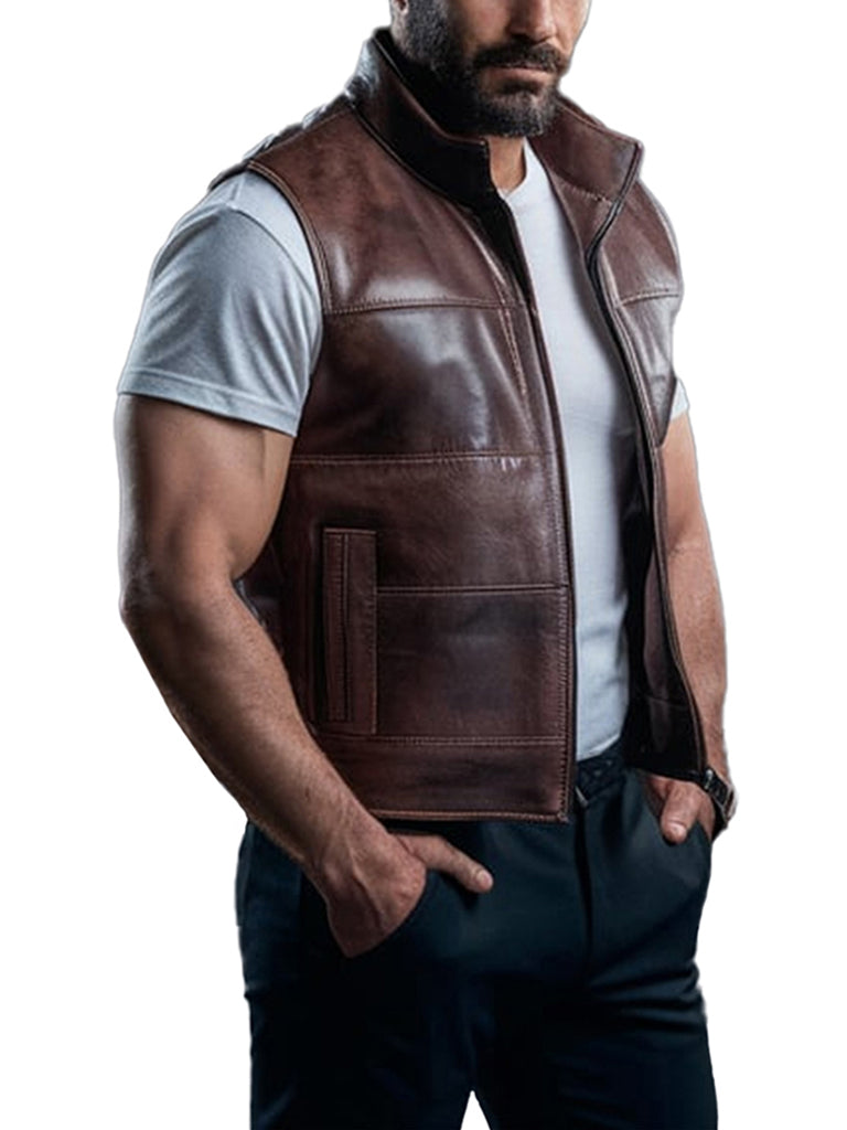 Upgrade your style with this Men's Handmade Brown Leather Vest, crafted from high-quality genuine leather that offers both durability and a sleek look. Perfect for layering over casual outfits, this vest combines classic design elements with a modern twist. The front zipper closure ensures a snug fit, while the sleeveless design provides comfort and ease of movement. With a timeless brown shade, this vest is ideal for enhancing your wardrobe with a versatile and stylish piece.