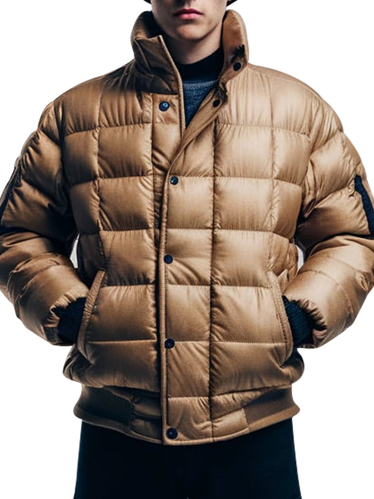 Keep warm and fashionable in this menās tan quilted puffer jacket for the winter season. Made from quality fabrics, this jacket offers warmth and is not heavy. Itās very stylish and tanned for that chic look that can complement any ensemble, making it perfect wear for outdoor activities or everyday wear. The buttoned down flap on the back and extra cushioning on the cuffs add an extra layer of warmth even in cold weather. Whether youāre out hiking in the mountains or walking the city pavement, this puffer jacket will fill your need for both utility and style.