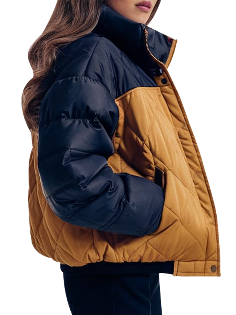 Keep warm this season with our Two-Tone Quilted Puffer Jacket which is perfect for any occasion. This jacket is made up of deep navy and mustard panels making it a great addition to your winter wear wardrobe. The high neck also gives an added layer of warmth against the cold and the quilting makes it fashionable. If you are the kind of person who goes out often at the weekends or during the day on weekdays then this puffer jacket could not be more ideal when it comes to aesthetics and practicality.