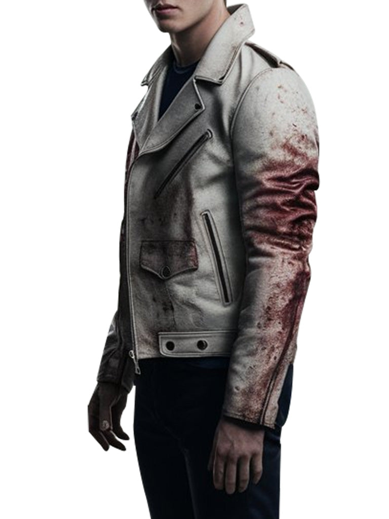 Stand out with this bold and edgy vintage leather biker jacket, featuring a unique blood-splatter design. Crafted from high-quality distressed leather, this jacket embodies a rebellious spirit, perfect for those who want to make a statement. The detailed stitching and classic biker style offer a perfect blend of ruggedness and style, making it a versatile addition to any wardrobe. Whether you're heading out for a ride or just looking to elevate your look, this jacket ensures you'll turn heads wherever you go.
