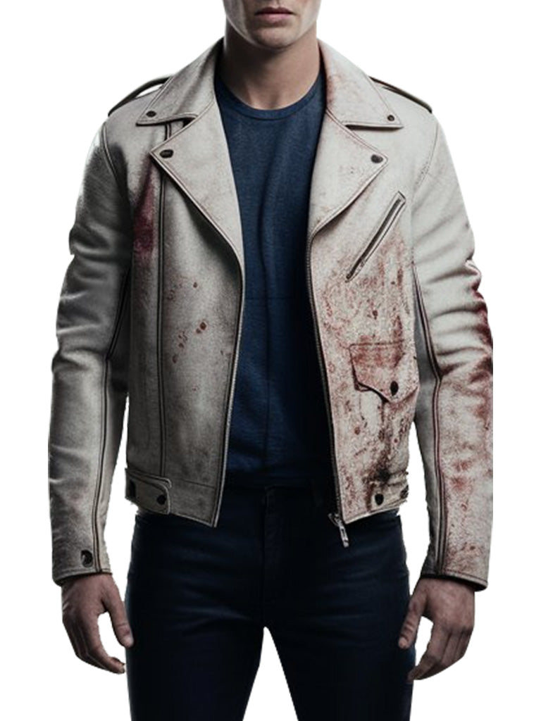 Stand out with this bold and edgy vintage leather biker jacket, featuring a unique blood-splatter design. Crafted from high-quality distressed leather, this jacket embodies a rebellious spirit, perfect for those who want to make a statement. The detailed stitching and classic biker style offer a perfect blend of ruggedness and style, making it a versatile addition to any wardrobe. Whether you're heading out for a ride or just looking to elevate your look, this jacket ensures you'll turn heads wherever you go.