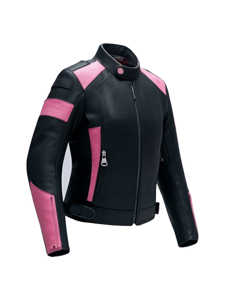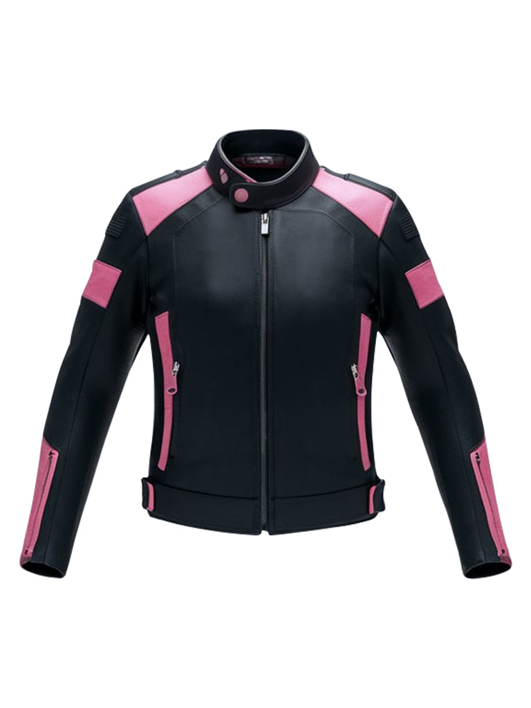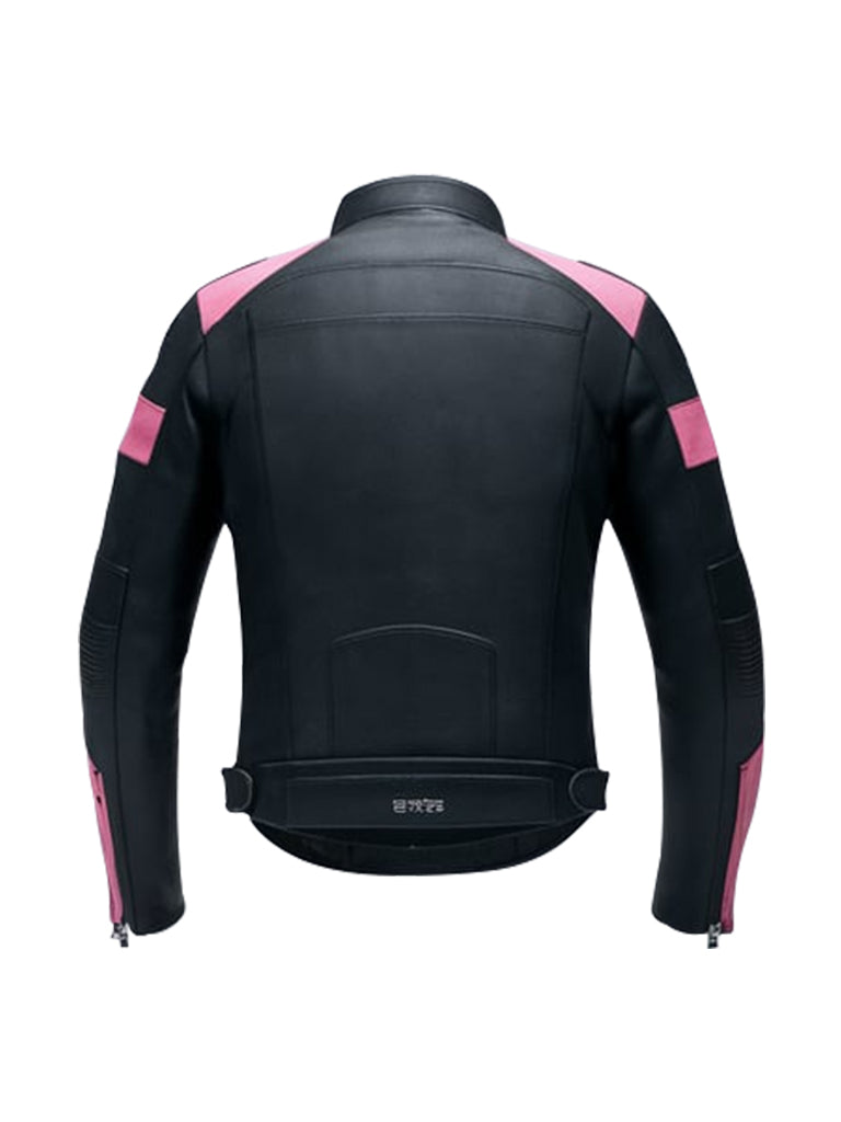 This jacket is the perfect blend of fashion and functionality, making it an ideal choice for those who want to stand out while staying protected on the road. Whether you're riding or simply making a statement, this black and pink leather biker jacket is a must-have for your wardrobe.