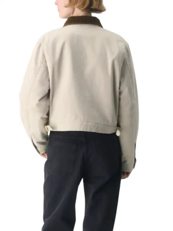 Women’s Beige Cotton Bomber Jacket | Casual Cropped Outerwear with Corduroy Collar
