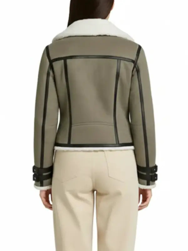 From coffee runs to evening outings, this gray shearling jacket is the perfect blend of chic and functional outerwear.