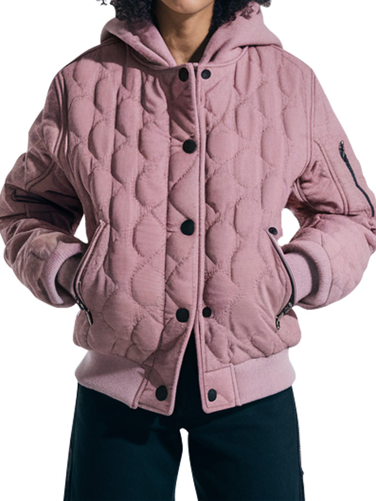 This Women’s Quilted Pink Hoodie Jacket is perfect for stepping into comfortable and stylish clothing. Perfect for the cold days this jacket has a stunning quilted pattern with a warm hoodie incorporated into the design. The color is soft pink which gives it a feminine look and feel, thus suitable for casual occasions or even a night out. This jacket is modern fit and has button up front that gives the jacket both style and functionality. The cuffs and waistband are ribbed to provide a good fit and the side pockets with zippers provide the utility of carrying objects. A perfect piece for anyone in search of both warmth and fashion as well as comfort.