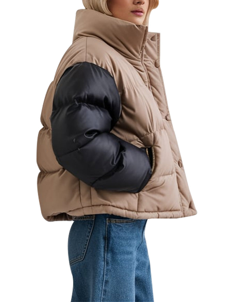 Arrive to the colder months with this Beige and Black Contrast Puffer Jacket. Intended to be warm but not bulky, this puffer jacket has a contrast design that gives it a fashionable edge to any casual look. The collar is high to protect the neck area from the harsh weather conditions while the sleeves are over-sized to give the dress a contemporary touch. The thickness of the padding is rather great, so the coat provides maximum warmth for the organism, which is perfect for winter walks. Whether you are going to do some shopping or simply taking a walk, this jacket will serve the purpose in both style and form.