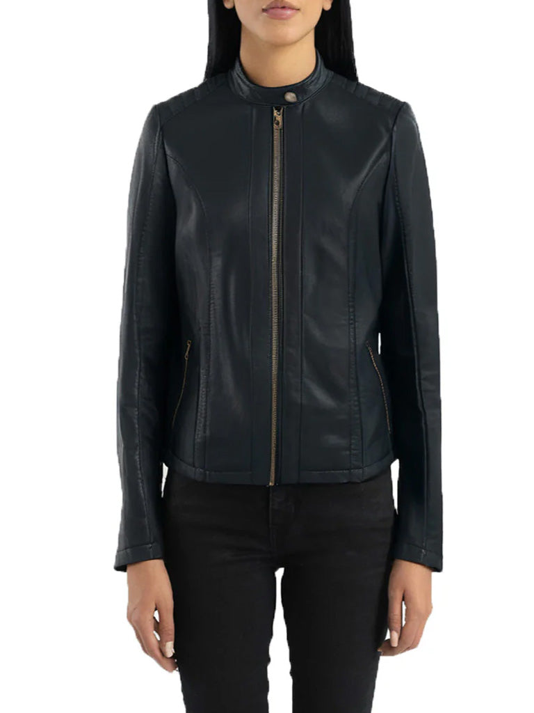 Biker Short Rounded Black Leather Jacket