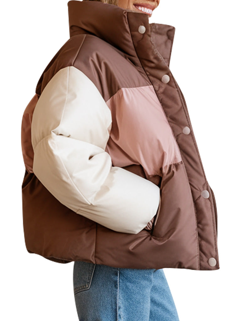 Whether you like fashion or just want to stay warm while looking stylish, this Women’s Color Block Puffer Jacket is an ideal choice. This is a puffer jacket meant for comfort and warmth and the design used is a color block design for a high neckline with a snap button closure front part. This jacket should be worn during winter activities, and for those who don’t want to be missed, this Jacket is perfect. It is a thick warm skin outside but the skin inside is rather soft and comfortable, however the material of the puffer is not very heavyweight this makes it very mobile. This jacket is suitable for wearing during errands or when going for a casual stroll especially when it is chilly, winter season.