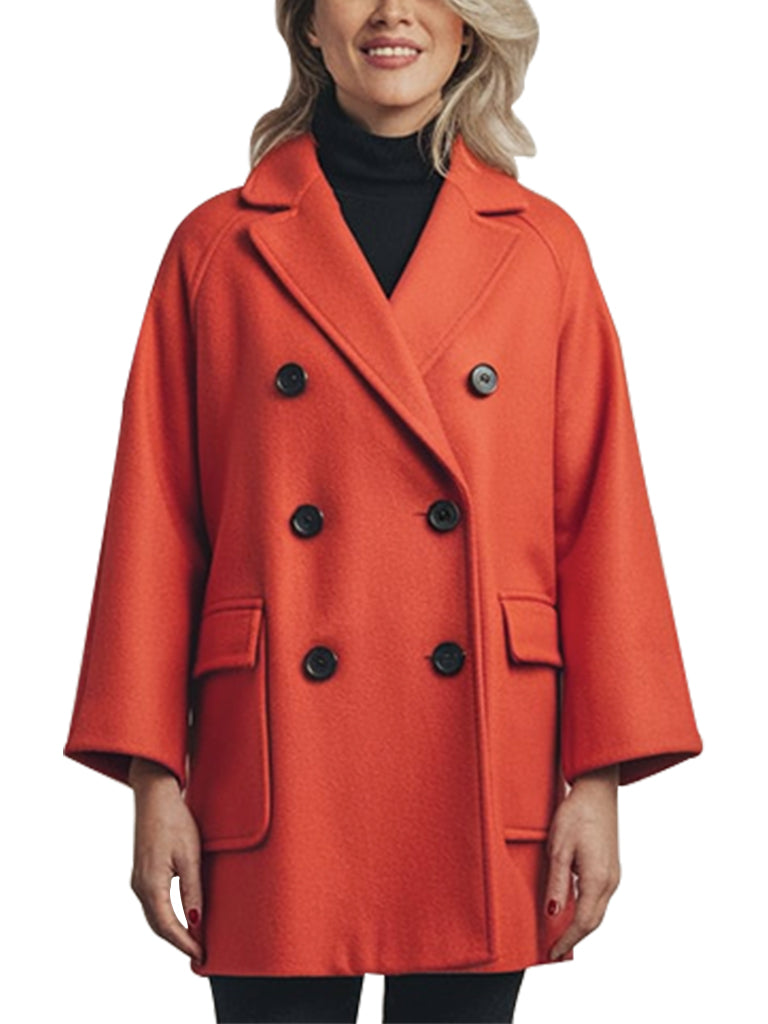 Stay stylish and warm this season with our Women's Double-Breasted Red Peacoat. Crafted from high-quality fabric, this coat offers a blend of comfort and durability, perfect for colder days. The striking red color adds a pop of vibrancy to any outfit, while the double-breasted front with large black buttons exudes timeless elegance. Featuring generously sized front pockets for practicality and a relaxed fit that flatters every body shape, this peacoat is a versatile addition to any wardrobe, ideal for both casual and formal settings.