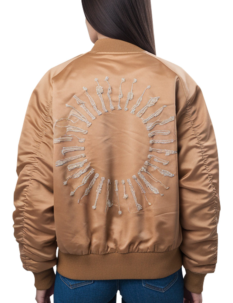 This is a beautiful Women’s Embroidered Bomber Jacket in a metallic gold that will bring some glamour to your outfits. This jacket is made with a lot of detail and has an embroidery design on the back giving it a classy touch to an otherwise simple design. The ribbed cuffs, collar and waistband mean that it fits well and is comfortable to wear, while the zip up front and side pockets are functional. This is an ideal bomber jacket that can be worn over other clothes and it is fashionable and very comfortable. Whether you are going out for a casual outing or a formal occasion this jacket will make you be the center of attraction.