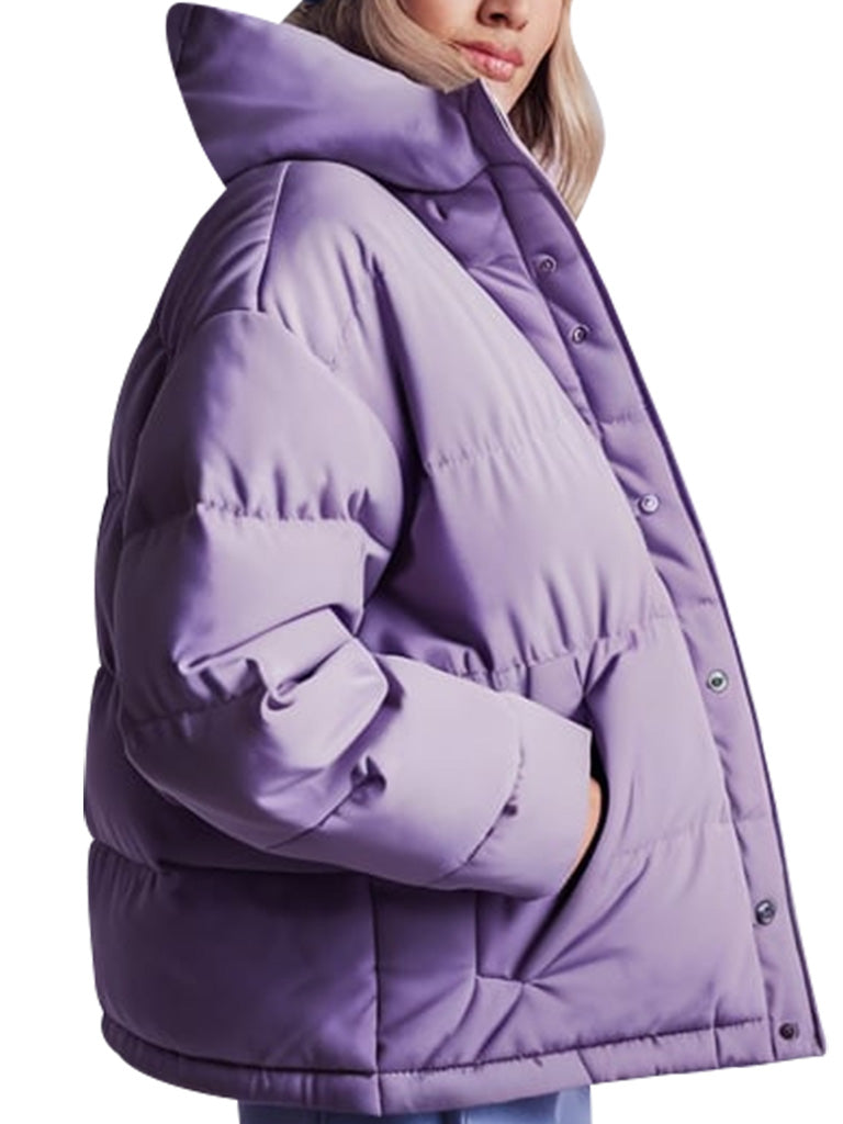 Stay cozy and stylish in this Women's Lavender Quilted Puffer Jacket. Designed for warmth and comfort, this jacket features a high collar, snap buttons, and a secure zipper closure to keep the cold out. The quilted design offers a modern look while ensuring maximum insulation. Perfect for those chilly days, the lightweight puffer material makes it easy to layer with any outfit. Whether you're heading to the city or exploring the great outdoors, this jacket adds a pop of color and functionality to your wardrobe.