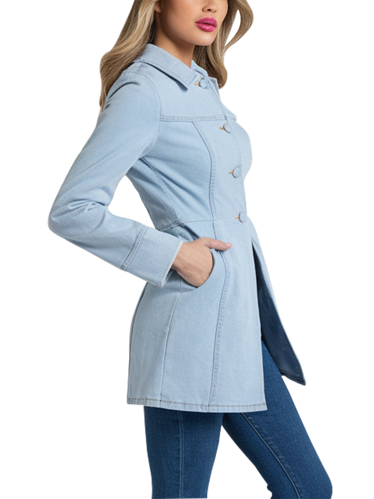 Here is your chance to upgrade your leisure wear with this Women’s Light Blue Denim Longline Jacket. This is a slim fit denim jacket that has a long length that gives it a more elegant look to the piece. Light blue gives a fresh look, great for wearing over your go-to shirts and t-shirts. This jacket is made from denim fabric of high quality to ensure that the jacket is both comfortable and long lasting, the jacket has buttons at the front to enable easy closure and has pockets on the front side to allow for easy access to items. This jacket can be worn for any casual outing or for the weekend trip making it an essential piece for any wardrobe.