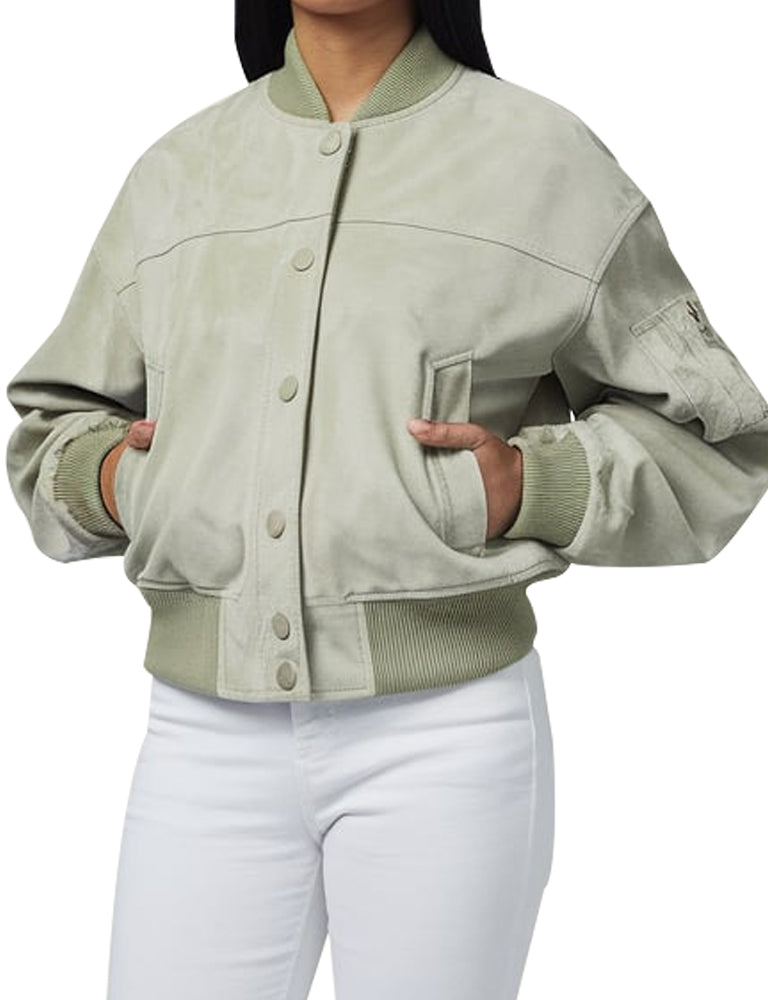 This Sage Green Women’s Bomber Jacket is the epitome of style and comfort for that modern and trendy look. This jacket has a comfortable loose cut and the ribbed cuffs, collar, and hem offer a close fit to create a more fashionable look. This bomber jacket comes with a Suede Leather finish, buttoned front closure, flap pockets and traditional bomber jacket style. Perfect for going out, or as a light layer for the evenings, this jacket fits in perfectly with any occasion, and brings a touch of class and versatility to your look.